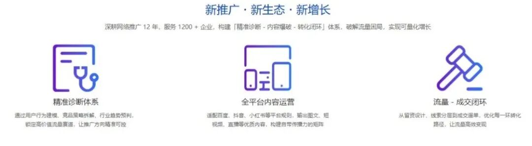 - 网络推广:网站 SEO、外贸推广(TikTok / 谷歌 / Facebook)、微信生态(小程序 / 公众号 / H5)等全渠道布局
